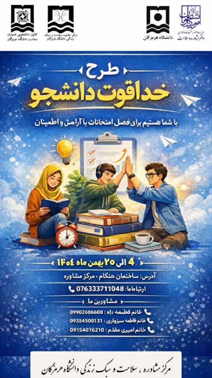 مرکز مشاوره،سلامت و سبک زندگی دانشگاه هرمزگان با شما برای فصل امتحانات با آرامش و اطمینان