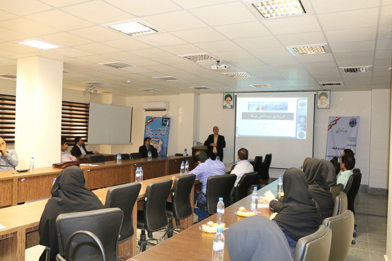 مرکز تخصصی آپا دانشگاه هرمزگان دوره آموزشی امنیت در زیر ساخت و شبکه را برای مدیران فناوری اطلاعات استان هرمزگان برگزار نمود، این جلسه در روز چهارشنبه مورخ 96/6/8 در دانشگاه هرمزگان برگزار گردید