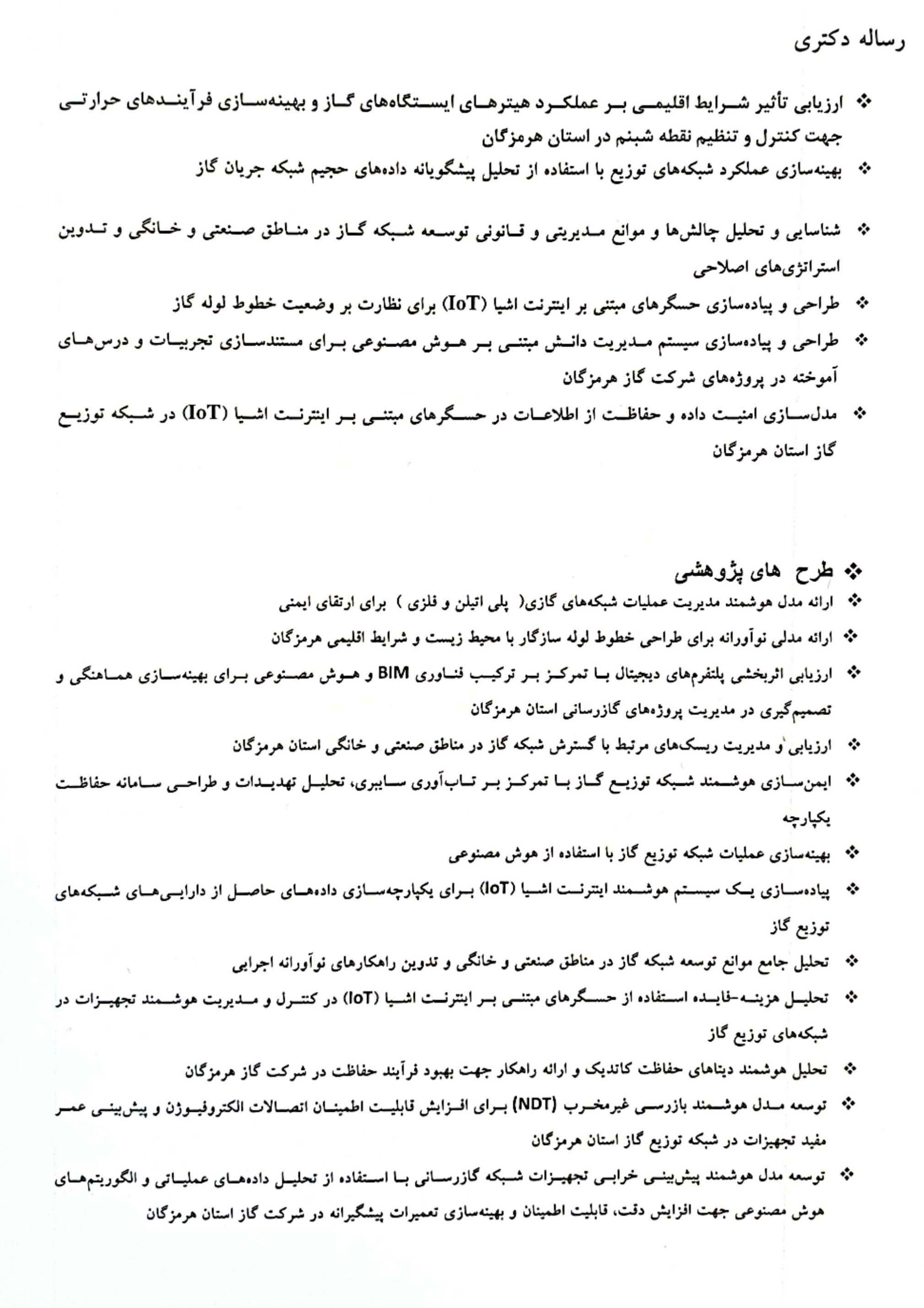 1- فهرست عناوین طرح های پژوهشی و پایان نامه و رساله های تقاضا محور مربوط به شرکت گاز استان هرمزگان در تصویر زیر قابل مشاهده است.